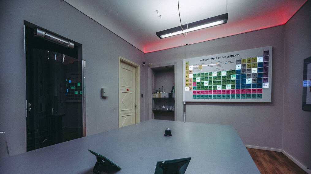 Futuristiska laboratorija, kurā katrs zobrats un gaisma var būt atslēga uz nākotni.